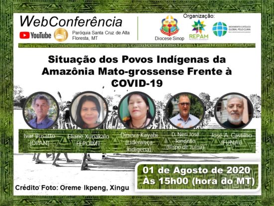 Apresentar a situação dos povos indígenas da Amazônia mato-grossense frente a COVID-19, sensibilizar a sociedade, discutir os e propor encaminhamentos são os objetivos da webconferência que será realizada no próximo sábado (01/08), às 15 horas do horário local (16h no horário de Brasília), com transmissão pelo Youtube da Paróquia Santa Cruz, de Alta Floresta. A…