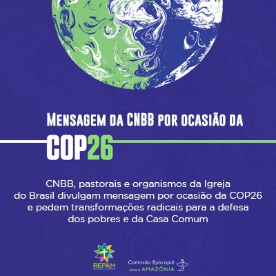 A Conferência Nacional dos Bispos do Brasil (CNBB), pastorais e organismos da Igreja do Brasil divulgam nesta quarta-feira, 10 de novembro, uma mensagem por ocasião da COP26, a Conferência do Clima da Organização das Nações Unidas que acontece em Glasgow, na Escócia.