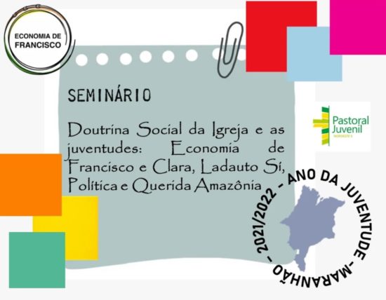 A Pastoral Juvenil do Maranhão realizará o Seminário “Doutrina Social da Igreja e as juventudes: Economia de Francisco e Clara, Ladauto Sí, Política e Querida Amazônia”, nos dias 21, 22 e 23 de janeiro de 2022, no Centro de Formação da Diocese de Caxias.