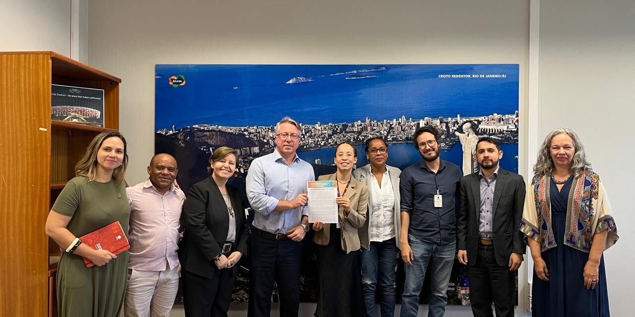 Participaram da reunião pela Secretaria, Thiago Longo Meneses, coordenador geral, Larissa de Oliveira Constant Barros, assessoria do gabinete da ministra, e Tacius Fernandes da Silva, chefe da assessoria de Participação Social e Diversidade.