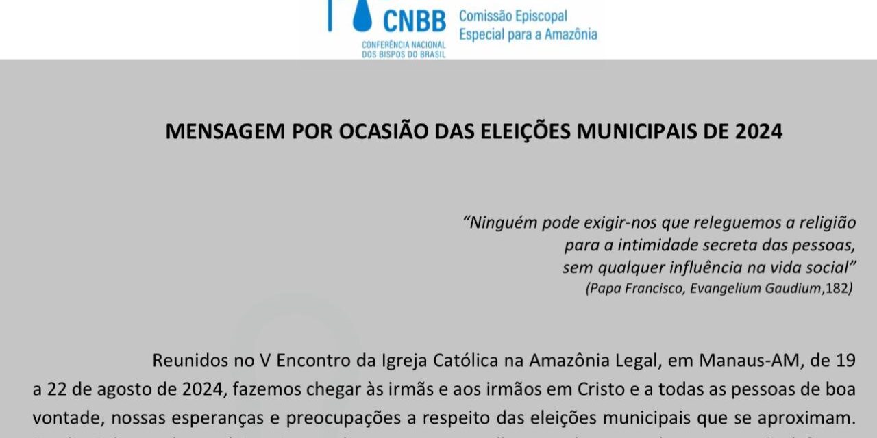 Reunidos no V Encontro da Igreja da Amazônia Legal, bispos, sacerdotes e leigos aprovaram mensagem por ocasião das eleições municipais, que acontecem nos mais de cinco mil municípios brasileiros em outubro próximo.