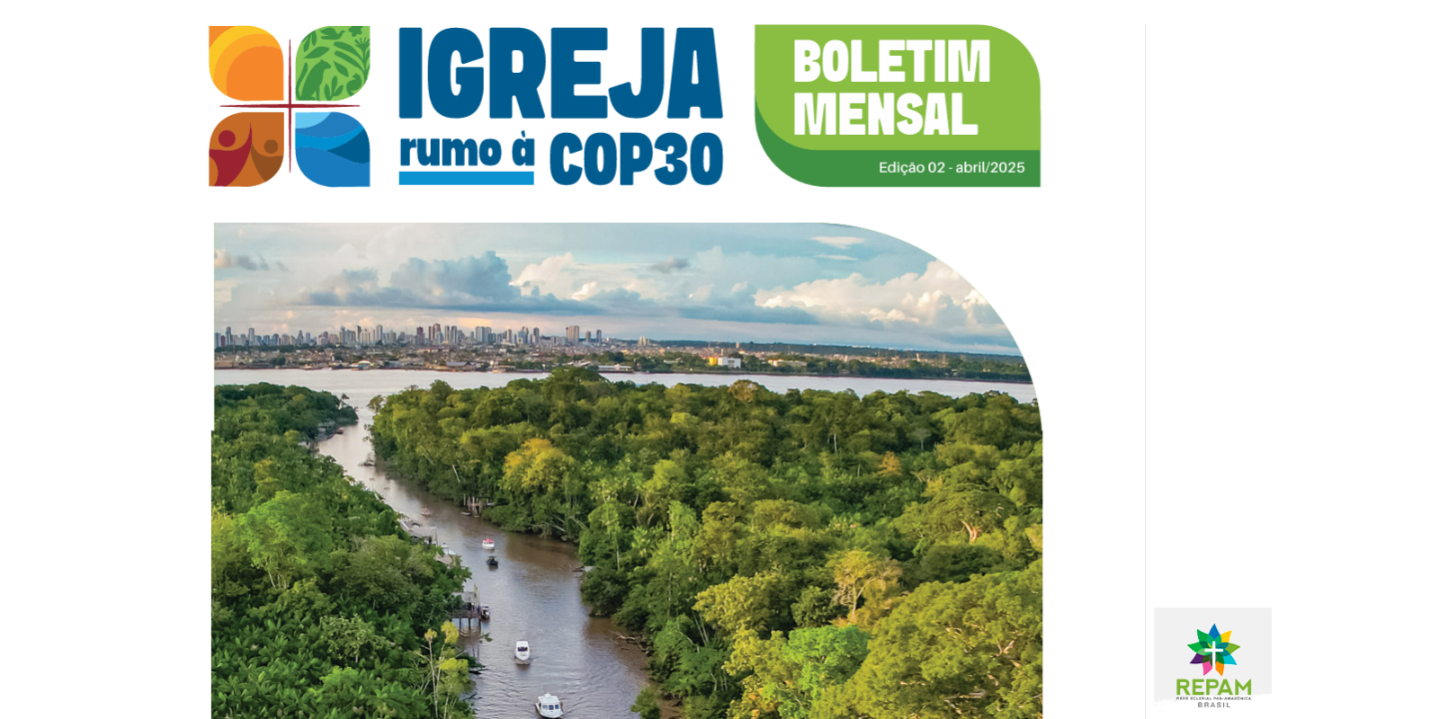 Está no ar a segunda edição do Boletim Mensal Igreja Rumo à COP 30: Articulação por Ecologia Integral e Justiça Climática. O boletim apresenta as principais ações, articulações e agendas da caminhada rumo à COP 30, com destaque para a Roda de Conversa em preparação à Pré-COP — um momento de escuta, partilha e construção coletiva.