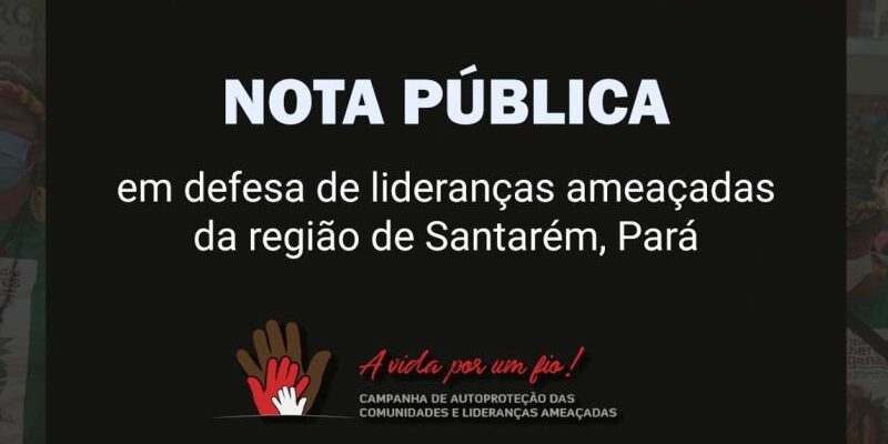 A REPAM-Brasil e outras organizações que compõem a Campanha “A Vida por um Fio” de Autoproteção de Lideranças e Comunidades Ameaçadas divulgam nota em defesa de lideranças ameaçadas em Santarém, Pará. As organizações denunciam as ameaças de morte contra Auricélia Arapiun, coordenadora executiva do Conselho Indígena Tapajós Arapiuns (CITA); Maria José Caetano, presidente da Associação Tapajoara; Ivete Bastos e Edilson Silveira, presidente e vice-presidente, respectivamente, do Sindicato de Trabalhadores e Trabalhadoras Rurais, Agricultoras e Agricultores Familiares (STTR) de Santarém.