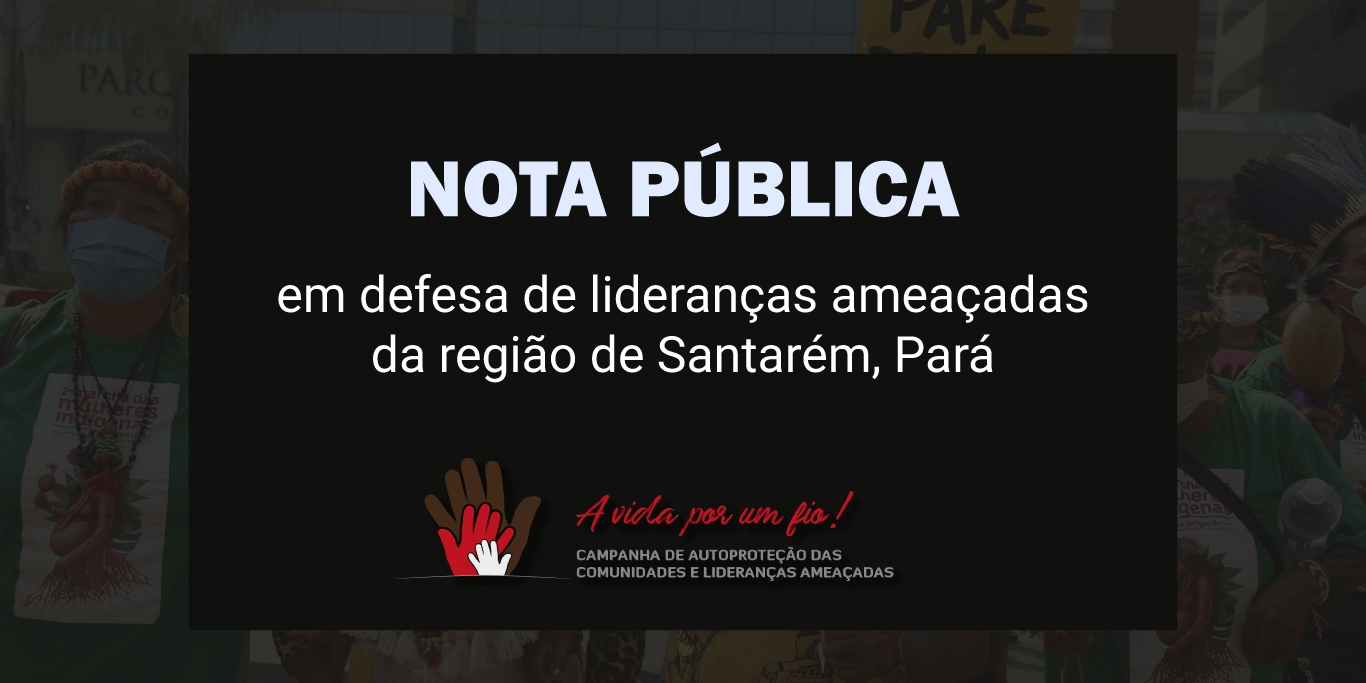 As organizações que compõem a Campanha “A Vida por um Fio” de Autoproteção de Lideranças e Comunidades Ameaçadas divulgaram, nesta quarta-feira (8), nota em defesa de lideranças ameaçadas em Santarém, Pará. As organizações denunciam as ameaças de morte contra Auricélia Arapiun, coordenadora executiva do Conselho Indígena Tapajós Arapiuns (CITA); Maria José Caetano, presidente da Associação Tapajoara; Ivete Bastos e Edilson Silveira, presidente e vice-presidente, respectivamente, do Sindicato de Trabalhadores e Trabalhadoras Rurais, Agricultoras e Agricultores Familiares (STTR) de Santarém.
