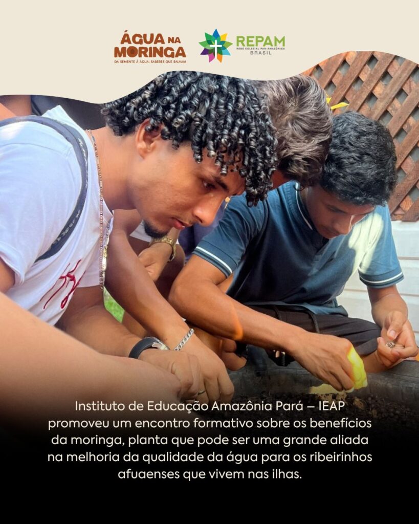 No último sábado, 27 de setembro, o Instituto de Educação Amazônia Pará (IEAP) promoveu em 3 comunidades um encontro formativo sobre os benefícios da Moringa oleifera, planta reconhecida pelo seu potencial na melhoria da qualidade da água e na promoção da saúde das comunidades ribeirinhas. O evento reuniu cerca de 40 estudantes e Guardiões Ambientais em uma manhã de diálogos, trocas de conhecimento e descobertas sobre o poder transformador dessa planta para as famílias locais.
