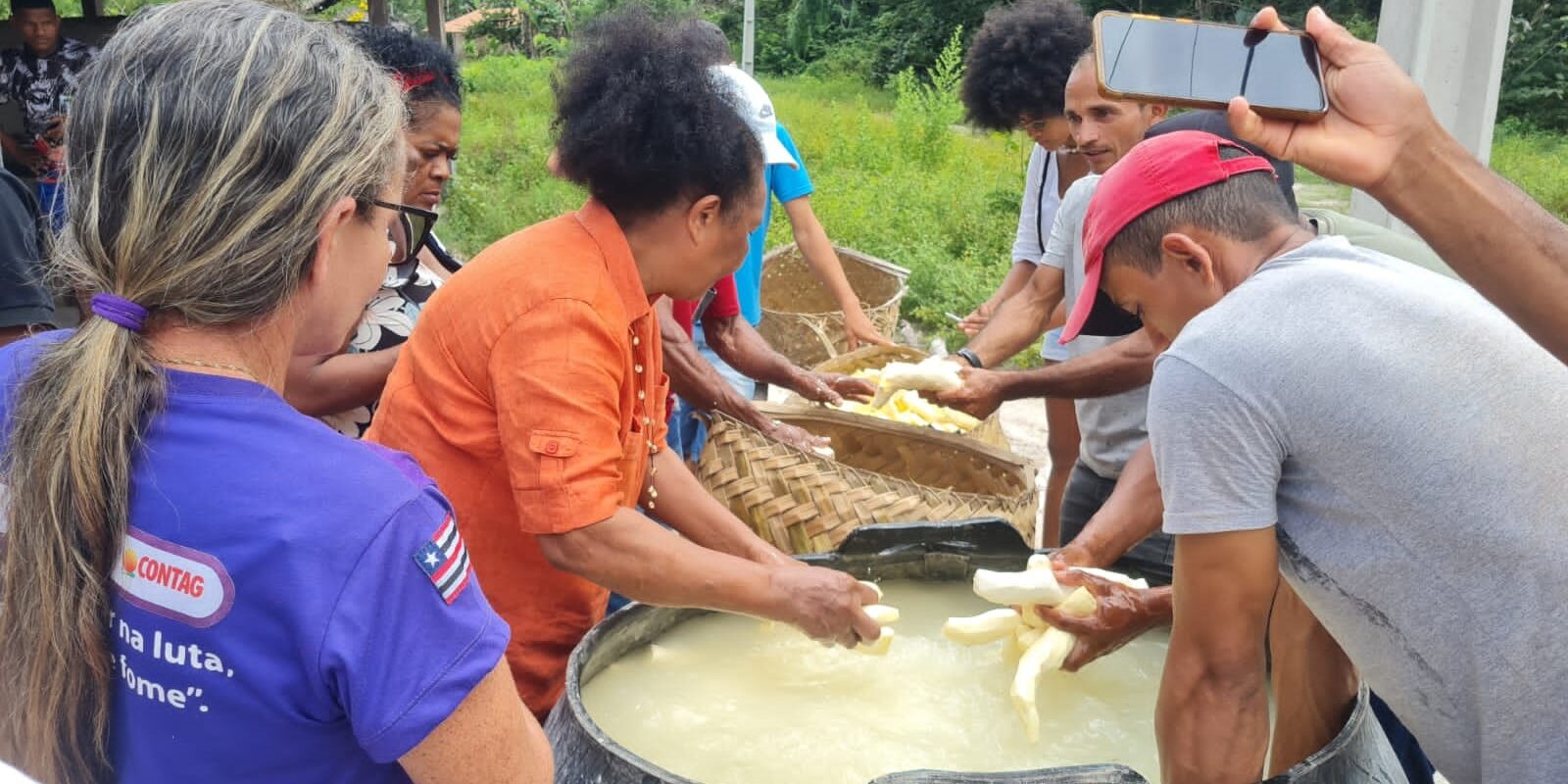 Entre os dias 15 e 17 de junho aconteceu o Intercâmbio Estadual sobre o beneficiamento da farinha. Foram dias de partilha no território quilombola da Rampa, na Comunidade São Joaquim, município de Vargem Grande. Foram cerca de 100 participantes, dentre 42 representantes de comunidades de outros municípios do estado e os da comunidade anfitriã.