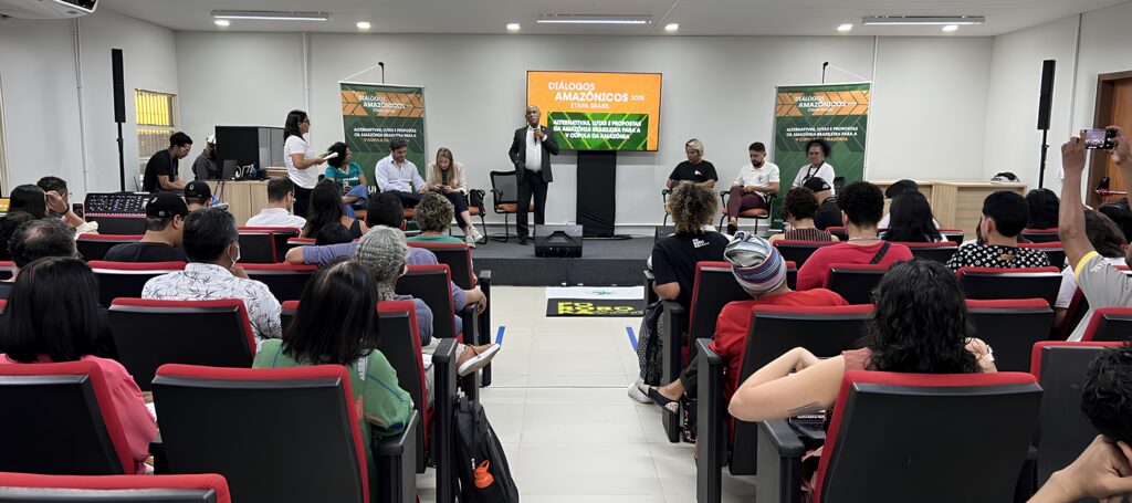 A Universidade Federal do Pará (UFPA), em Belém, foi sede, nesta terça-feira (29), do encontro Diálogos Amazônicos 2025 – Etapa Brasileira, realizado em formato híbrido. O evento reuniu representantes de povos tradicionais, organizações sociais, autoridades e especialistas para discutir os principais desafios e caminhos para o futuro da Pan-Amazônia. A etapa brasileira marca o início da construção coletiva das propostas que serão levadas à V Cúpula de Presidentes da Amazônia, que acontecerá em agosto, na Colômbia. A programação foi estruturada em torno de três grandes painéis temáticos: Direitos, Territórios e o Acordo de Escazú; O Desafio de Proteger a Amazônia do Ponto de Não Retorno; e Alternativas Sustentáveis, Financiamento e Reflorestamento. Segundo os organizadores, mais do que um evento pontual, os Diálogos se consolidam como uma instância viva e institucional de escuta, proposição e ação — agora com papel estratégico na preparação rumo à COP30, que será realizada em Belém. O reitor da Universidade Federal do Pará (UFPA), Gilmar Pereira da Silva, destacou a relevância da participação popular nos processos políticos, especialmente rumo à COP30. Ele celebrou o envolvimento da universidade nos Diálogos Amazônicos e na sistematização da Declaração de Belém, defendendo que não há COP legítima sem os povos amazônicos e os movimentos sociais. Gilmar reafirmou o compromisso da UFPA em colocar seu conhecimento e estrutura a serviço da luta por justiça social, enfrentando os desafios impostos por uma realidade ainda marcada pelo colonialismo e pelas desigualdades. Para ele, “pensar a Amazônia é pensar o país a partir de uma perspectiva popular, inclusiva e transformadora”. Marília Closs, coordenadora de projetos da Plataforma CIPÓ, apresentou um balanço da implementação da Declaração de Belém, assinada em 2023, destacando que o documento, com seus 113 compromissos distribuídos em 16 eixos temáticos, é um instrumento potente para a cooperação internacional na proteção da Amazônia. A plataforma acompanha cerca de 1.400 ações políticas relacionadas à implementação da declaração, constatando que 65% dessas iniciativas ainda estão em estágio preliminar, como criação de grupos de trabalho e reuniões técnicas. Apesar dos avanços, principalmente na proteção das florestas, ela ressaltou o atraso causado por entraves burocráticos, falta de financiamento e a sobrecarga de poucos atores envolvidos. Marília enfatizou a necessidade de maior urgência e eficácia para transformar o compromisso político em ações concretas, colocando a Plataforma CIPÓ à disposição para contribuir com a construção de propostas para a próxima etapa, a ser discutida na Cúpula da Amazônia em Bogotá. João Pedro, coordenador de Articulação do Coletivo Pororoka, membro do Comitê Internacional do Fórum Social Pan-Amazônico (FOSPA) e representante da Assembleia Mundial pela Amazônia, destacou a resistência histórica da região frente ao modelo capitalista global, que ele classificou como predatório e voltado exclusivamente ao lucro. Para ele, o Sul Global (em especial as florestas tropicais da Amazônia, África e Indonésia) sustenta a vida no planeta, e é injusto que recaia apenas sobre esses territórios a responsabilidade de proteger o futuro da Terra. João Pedro enfatizou que não pode haver política pública para a Amazônia sem a presença efetiva da sociedade civil amazônica e defendeu a criação de um mecanismo de participação social permanente dentro da Organização do Tratado de Cooperação Amazônica (OTCA), a chamada OTCA Social. Essa estrutura permitiria que movimentos sociais e populações locais tivessem assento legítimo para acompanhar e influenciar decisões políticas, garantindo que a implementação de compromissos internacionais, como os assumidos rumo à COP30, ocorra com democracia e efetividade. O embaixador João Marcelo Queiroz, do Ministério das Relações Exteriores, ressaltou que os Diálogos Amazônicos representam um momento estratégico para articular posições comuns entre os países da região rumo à COP30. Ele destacou a proposta brasileira do Fundo Florestas Tropicais para Sempre (TFF) como uma iniciativa promissora para viabilizar o financiamento climático em larga escala voltado à conservação das florestas tropicais. Segundo ele, a segunda edição dos Diálogos, que será realizada na Colômbia, representa mais um passo relevante na construção de um modelo sólido de diálogo e engajamento entre os Estados e a sociedade civil amazônica. Joana Menezes, da Rede Eclesial Pan-Amazônica (REPAM), ressaltou a importância da presença efetiva dos povos amazônicos nas decisões que afetam a região, reafirmando que nada deve ser discutido sem a participação direta das populações locais. Como mulher negra amazônida, compartilhou sua vivência em diálogo com comunidades de pescadoras, quilombolas e quebradeiras de coco, apontando que, embora os impactos socioambientais variem entre os territórios, todos os povos da Amazônia sofrem com as consequências do atual modelo de exploração. Joana destacou que a sabedoria ancestral das mulheres, juventudes e povos tradicionais oferece caminhos concretos para a proteção da sociobiodiversidade e reforçou a importância da OTCA Social como mecanismo institucional de participação popular nas instâncias de decisão. Germán Niño, coordenador do Grupo de Economias Transformadoras da Latindadd, integrante do Comitê Internacional do Fórum Social Pan-Amazônico (FOSPA) e do Fórum Social Mundial de Economias Transformadoras (FSMET) Colômbia 2024, alertou para os retrocessos socioambientais na região, mencionando casos como a fusão dos ministérios de mineração e meio ambiente no Equador e o avanço de projetos extrativistas que colocam comunidades e natureza em risco. Criticou o desinteresse de alg