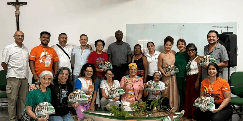 Feira do Bem-Viver e celebração de abertura marcaram o início das atividades da REPAM-Brasil na COP30 O domingo (9/11) foi de partilha, espiritualidade e trocas de conhecimento na sede da CNBB Norte 2, em Belém (PA), durante o Circuito Pan-Amazônico de Saberes e Sabores da Amazônia, promovido pela REPAM-Brasil. As atividades reuniram representantes de comunidades tradicionais, movimentos sociais, instituições parceiras e organizações da Igreja para um dia de integração em torno da Casa Comum, da economia solidária e do cuidado com os territórios. A programação começou com a celebração de acolhida e abertura. O momento, guiado pelo tema “Escuta: voz da terra, voz dos povos”, convidou os participantes a ouvir, de forma profunda, as dores e esperanças da Amazônia, em sintonia com o espírito da COP30, que será realizada em Belém nos próximos dias. Leituras, cantos e orações coletivas trouxeram à tona a mensagem de que “a escuta é o primeiro passo da transformação”. Ao final da celebração, Arlete Gomes, da equipe da REPAM-Brasil, destacou a importância desse espaço de diálogo e valorização das mulheres nos territórios. “Trazer essas mulheres para esse cenário de debate é fazer uma nova economia possível. Que essa feira seja uma troca de experiências e de grande conhecimento entre os biomas que convergem na nossa Amazônia brasileira. Temos aqui o Cerrado, o Pantanal e a Amazônia com suas cores diferenciadas. Aproveitem muito”, convidou. Ainda durante a manhã, teve início a Feira do Bem-Viver, espaço de partilha de produtos da agricultura familiar, da economia solidária e de saberes tradicionais dos diversos biomas brasileiros, como o Cerrado, o Pantanal e a própria Amazônia. Biojoias, ervas medicinais, artesanatos, sementes e alimentos agroecológicos chamaram a atenção dos visitantes e simbolizaram a diversidade e a força das mulheres e comunidades produtoras. À tarde, a programação seguiu com exibição de documentário sobre gestão comunitária da água, produzido por pela REPAM-Colômbia. De acordo com Juan Felipe Martinez, secretário da Rede na Colômbia, neste ano, toda a REPAM adotou a água como um elemento central para a incidência e a comunicação. “No contexto da campanha pela água e pelos direitos das comunidades, lançamos um documentário, como REPAM Colômbia, para mostrar que a água não é apenas um bem comum ou um recurso, mas algo que está integrado à vida das comunidades, aos seus direitos, às suas formas de ser, de estar e de agir no território”, destacou Juan. Segundo Matinez, o documentário mostra que o pulsar da água na Amazônia é uma luta pela própria vida no território. “Por isso, apresentamos aqui três experiências de trabalho e exibimos este importante documentário, que pode ser encontrado no YouTube da REPAM”, concluiu. As atividades da REPAM-Brasil na COP30 seguem nesta segunda-feira (10/11), com escuta das lideranças dos territórios e movimentos sobre desafios e das boas práticas comunitárias na resposta à crise climática e com a contextualização sobre a importância, desafios e atuação da REPAM na COP30 e Cúpula dos Povos.