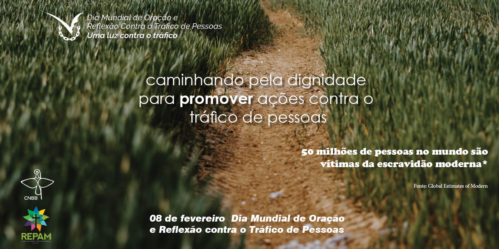 A Comissão Episcopal Pastoral Especial para o Enfrentamento ao Tráfico Humano (CEPEETH) CNBB, em parceria com a Rede Internacional Talitha Kum, fortalece a 9ª edição de Oração e Reflexão Contra o Tráfico de Pessoas e propõe a romaria pela dignidade humana. A data de 08 de fevereiro, dia de Santa Bakhita, foi instituída pelo Papa Francisco para que as pessoas dediquem um tempo de orações e reflexões sobre o Tráfico de Pessoas. Este ano o tema é “caminhando pela dignidade”, inspirado no Preâmbulo da Declaração Universal dos Direitos Humanos que define a dignidade humana como horizonte da liberdade, da justiça e da paz.