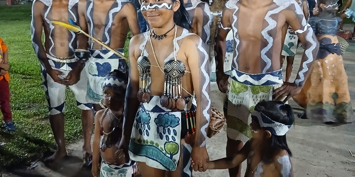 Na noite cultural, as comunidades Ticuna apresentaram danças e cantos que alertam sobre os impactos das mudanças climáticas: