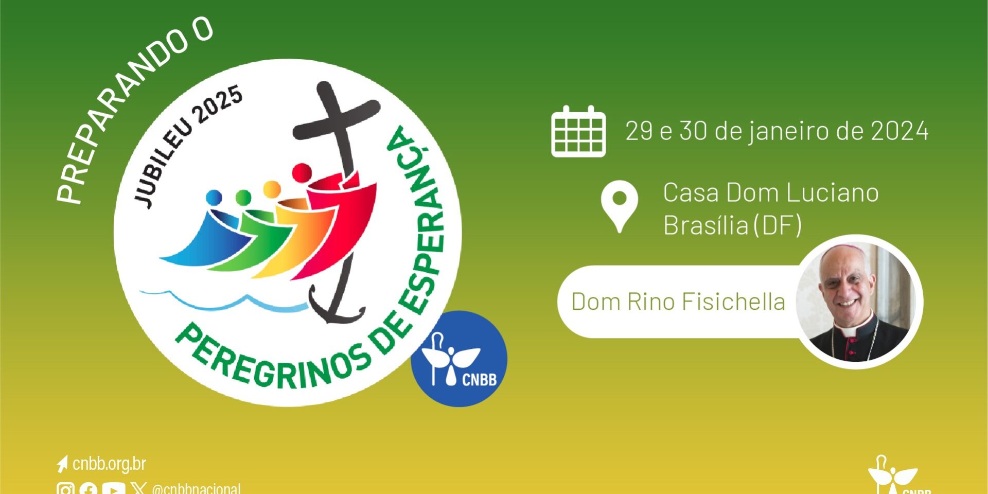Seguindo o processo de preparação para o encontro nacional “Jubileu 2025 – peregrinos de esperança” que acontecerá em Brasília, na Casa Dom Luciano Mendes de Almeida, nos dias 29 e 30 de janeiro de 2024, foram encaminhadas cartas convites a todos os bispos da Igreja no Brasil bem como à coordenação das pastorais, movimentos e organismos do povo de Deus para a participação no evento, que terá a presença de Dom Rino Fisichella, pró-prefeito do Dicastério para a Evangelização e também organizador e coordenador do jubileu de 2025.