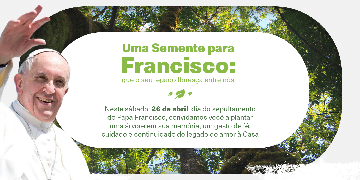 Neste sábado, 26 de abril, dia em que o Papa Francisco será sepultado, convidamos todas as comunidades a se unirem em uma homenagem simbólica e cheia de significado: plante uma árvore em sua memória.