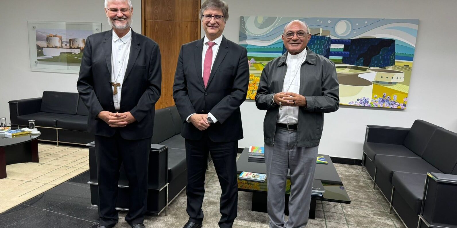 Dom Evaristo Pascoal Spengler, bispo de Roraima e presidente da REPAM-Brasil, Dom Pedro Brito, arcebispo de Palmas e vice-presidente, acompanhados de Melillo Dinis, assessor jurídico e de incidência, estiveram na tarde desta quinta-feira, 12, com o Procurador Geral da República, Dr. Paulo Gonet, em Brasília.