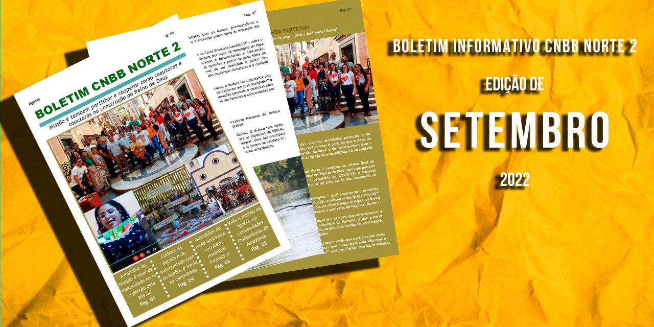 O Regional Norte 2 da Conferência Nacional dos Bispos do Brasil (CNBB) divulgou na última quinta-feira, 29 de setembro, a edição de setembro do seu Boletim Informativo. O boletim informativo da CNBB do Regional Norte 2 é uma ferramenta de comunicação e divulgação das diversas atividades realizadas pelos grupos, pastorais e movimentos deste Regional, assim como, de eventos de grande relevância para a vida da Igreja em âmbito nacional e regional.